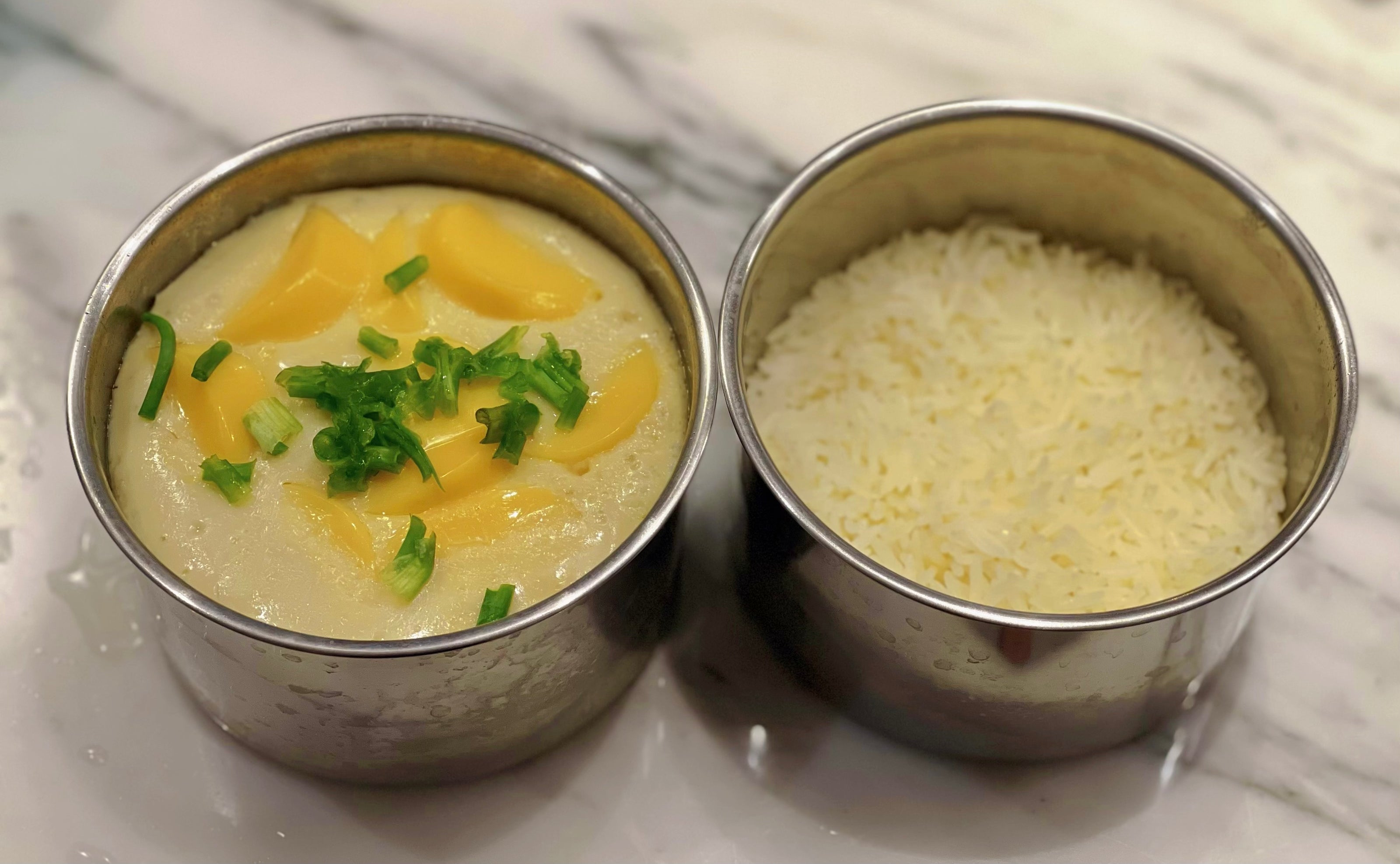 ✅ Wash Jasmine rice and add the broth ( instead of water) into the rice. Save some broth for the steamed egg too.