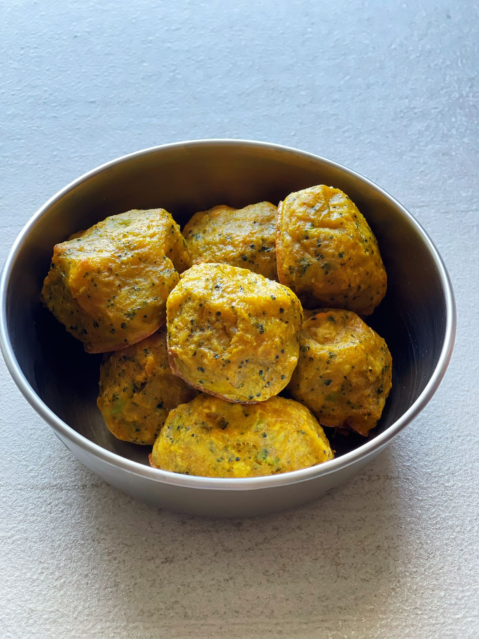 ✅ Brush the muffin tin with unsalted butter and bake the balls for 15 mins